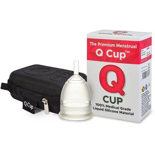 The Premium Menstrual Q Cup is a menstrual hygiene device which is inserted into the V during menstruation. Its purpose is to collect menstrual fluid (blood from the uterine lining mixed with other fluids). The Premium Menstrual Q Cup is made of 100% medical grade liquid silicone. It is shaped like a bell with a stem. The stem is used for insertion and removal. The bell-shaped cup seals against the V wall just below the cervix. Every 4–9 hours (depending on the amount of flow), the Q cup is removed, emptied, rinsed, and reinserted. After each period, the Q cup requires cleaning with clean water. Q cup collects menstrual fluid rather than absorbing it.