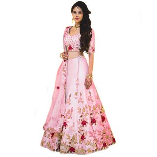 Know MoreToday Deal Women's Pink Dupion Silk Embroidered Semi Stitched Lehenga Choli(LG140-NOV2019, Free Size)