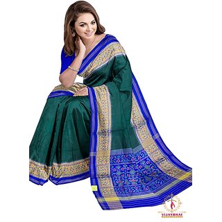 Dark Green & Blue with Gada Border Patola Saree --Single Weave