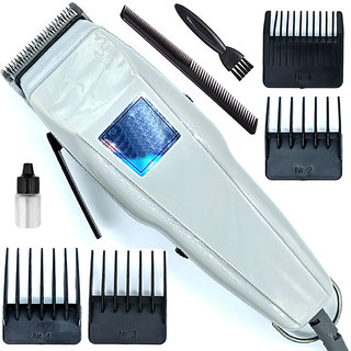 Know MorePowerful corded 9W hair clipper and trimmer with 4 length settings in one pack. A complete grooming kit which can trim your hair and beard from 0.8mm, 3mm, 6mm, 9mm & 12mm. Corded ultra trim grooming kit gives you the power of precision with complete versatility for all of your grooming needs. With this trimmer in hand, you don’t have to worry about looking shabby. It’s designed to take care of your beard and shape it effortlessly. The Ultra Trim Bread Trimmer comes with 4 guide comb (3mm, 6mm, 19mm, 12mm) to give you the flexibility of different lengths and precise trimming. Corde, can be used as much time you want. Simple plug and play. Washable and removable, the cutting head can be simply changed and cleaned up under the faucet. Ergonomic design fits in your hand, with a grip that gives you precision control. Self-sharpening technology for trimming blades. High-Speed Drive: Linear Motor Drive. Silver Pd Alloy Motor of High Moving Speed. Motor Speed: 2,500 RPM.Voltage: 110-240V Power consumption: 9W. Frequency: 50Hz. Materials: ABS Plastic + Stainless Steel. Washing Mode: Pull out shaving head and wash Directly through Water. Package Content : 1 pcs Beard Trimmer + 4 Adjustable Guide Comb (3mm, 6mm, 9mm, 12mm) + 1 pcs Cleaning Brush + 1 pcs Lubricating Oil + 1 Comb + 1Scissor. 1 year Replacement Warranty.