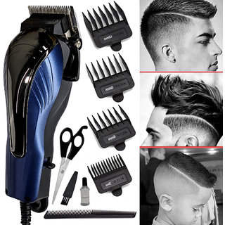 Know MorePowerful corded 9W hair clipper and trimmer with 4 length settings in one pack. A complete grooming kit which can trim your hair and beard from 0.8mm, 3mm, 6mm, 9mm & 12mm. Corded ultra trim grooming kit gives you the power of precision with complete versatility for all of your grooming needs. With this trimmer in hand, you don’t have to worry about looking shabby. It’s designed to take care of your beard and shape it effortlessly. The Ultra Trim Bread Trimmer comes with 4 guide comb (3mm, 6mm, 19mm, 12mm) to give you the flexibility of different lengths and precise trimming. Corde, can be used as much time you want. Simple plug and play. Washable and removable, the cutting head can be simply changed and cleaned up under the faucet. Ergonomic design fits in your hand, with a grip that gives you precision control. Self-sharpening technology for trimming blades. High-Speed Drive: Linear Motor Drive. Silver Pd Alloy Motor of High Moving Speed. Motor Speed: 2,500 RPM.Voltage: 110-240V Power consumption: 9W. Frequency: 50Hz. Materials: ABS Plastic + Stainless Steel. Washing Mode: Pull out shaving head and wash Directly through Water. Package Content : 1 pcs Beard Trimmer + 4 Adjustable Guide Comb (3mm, 6mm, 9mm, 12mm) + 1 pcs Cleaning Brush + 1 pcs Lubricating Oil + 1 Comb + 1Scissor. 1 year Replacement Warranty.