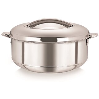 Know MoreNO MICROWAVE? NO PROBLEM! WARMEO is the one stop shop solution. Reheating your food in the microwave destroys its nutritional content. Our range of products is made with the help of cutting edge technology, purest stainless steel material and infusion of polyurethane. So serve at a dinner party in our stylish casserole, eat while traveling in our airtight hot pots or take a lunch break in office in our insulated lunch packs, you can do of all this without using a microwave. Our double wall stainless steel products with high quality insulation ensures that your foods stay hot and fresh for long hours. High Quality Stainless Steel Casserole made of 201 stainless steel utensil grade material. Stainless Steel material used is non magnetic, non toxic and free of any harmful coating. Special Quality Polyurethane is used for insulation which helps to retain the heat and keep the food fresh for a long time. Mirror Finish Polish gives the product a stylish and presentable touch which you can definitely flaunt on your dining table. Easy Locking system is installed in the Lid which has a sturdy steel handle to make sure the food inside remains steaming hot. Available in various sizes and gift sets Great for Gifting. Brand: Warmeo Material: Stainless steel Colour: Silver Capacity: 15000 ml Dimensions (mm): L-390 x W-200 x H-385 Weight: 2710 gm Includes: 1 Stainless Steel Casserole WARNING : Do not Keep on fire or Inside the Microwave