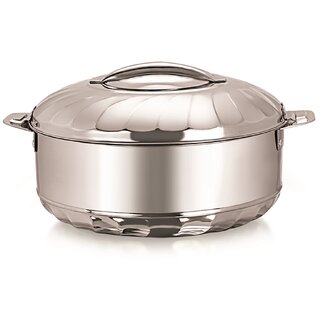 Know MoreNO MICROWAVE? NO PROBLEM! WARMEO is the one stop shop solution. Reheating your food in the microwave destroys its nutritional content. Our range of products is made with the help of cutting edge technology, purest stainless steel material and infusion of polyurethane. So serve at a dinner party in our stylish casserole, eat while traveling in our airtight hot pots or take a lunch break in office in our insulated lunch packs, you can do of all this without using a microwave. Our double wall stainless steel products with high quality insulation ensures that your foods stay hot and fresh for long hours. High Quality Stainless Steel Casserole made of 201 stainless steel utensil grade material. Stainless Steel material used is non magnetic, non toxic and free of any harmful coating. Special Quality Polyurethane is used for insulation which helps to retain the heat and keep the food fresh for a long time. Mirror Finish Polish gives the product a stylish and presentable touch which you can definitely flaunt on your dining table. Easy Locking system is installed in the Lid which has a sturdy steel handle to make sure the food inside remains steaming hot. Available in various sizes and gift sets Great for Gifting. Brand: Warmeo Material: Stainless steel Colour: Silver Capacity: 5000 ml Dimensions (mm): L-260 x W-130 x H-260 Weight: 1300 gm Includes: 1 Stainless Steel Casserole WARNING : Do not Keep on fire or Inside the Microwave