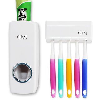 Know MoreOverview Personal hygiene is extremely important. To help you improve your hygiene, The simple product helps organise a toothpaste tube and toothbrushes in a neat and clean manner. Check it out now. Utility design The set consists of a toothpaste dispenser and a toothbrush holder. The toothpaste dispenser can accommodate a full toothpaste tube in the provided insert from top. The toothbrush holder can hold five toothbrushes. It has a hood covering the brush bristles, thereby promoting hygiene. Made of ABS Plastic the set is sturdy and long lasting. The Oiet ABS Plastic Brush Holder and Toothpaste dispenser. Usage The toothpaste dispenser is provided with an insert slot for toothbrushes, in which the desired amount of toothpaste is dispensed via a nozzle when the toothbrush is inserted. Installation is easy too. As far as the toothbrush holder is concerned, simply lift the hood, place the toothbrush in a groove, and shut the hood. Usage is that simple.