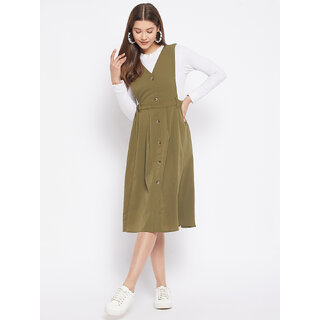 Know MoreMaintain a chic appearance all year long with this trendy WineRed dress. Wow your date by pairing this solid Olive green piece with platform heels and a chic blazer. Disclaimer: Our stylist has paired this dress with a T-shirt. This dress does not come with a T-shirt.