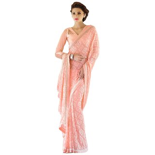 Know More6.3 mtr length with blouse piece Wash separately in cold water Occasion: Evening Wear, Party Wear, Casual Wear Wash care instructions: Regular Hand/Machine wash/Dry In Shade Show your casual instinct wearing this subtle salmon brasso saree. This drape is thoroughly detailed with geomettric pattern along with a contrasting patch border with intricate stonework.
