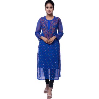 Know More| Look and feel beautiful in this uniquely designed kurta from fawoment. This product is have handloom chikan embroidery like- "keel phanda",this stitch is a variation of tiny running stitches used to form 'Y' shape which gave a beautiful look on this kurta.Disclaimer:This product is hand embroidered and may have slight dissimilarities that are a natural outcome of the human involvement in the process. These minor variations of Stitches/Motifs add to its charm and ensure you have a unique product. |