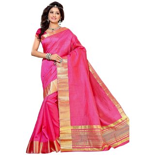 Know MoreFabric:Tussar Silk,Style:Traditional Saree,Color: Rani Work Pattern: Weaving Allover Jari,Hand Dyed Length: 6.20 Mtrs(Approx) Box Content: 1 Saree with Running Unstiched Blouse Dry Wash Only