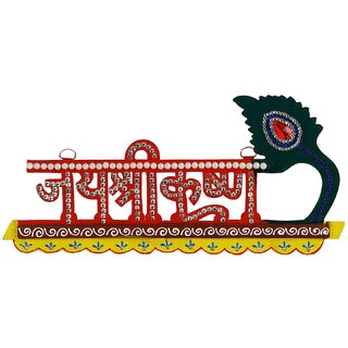 Know Morewall hanging decor,home decor,jai shree kridhna wooden for janmashtmi or other occasions,best item to gift someone in anniversary or in innaugration,multicoloured,kundan work