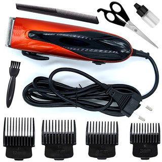 Know MorePowerful corded 9W hair clipper and trimmer with 4 length settings in one pack. A complete grooming kit which can trim your hair and beard from 0.8mm, 3mm, 6mm, 9mm & 12mm. Corded ultra trim grooming kit gives you the power of precision with complete versatility for all of your grooming needs. With this trimmer in hand, you don’t have to worry about looking shabby. It’s designed to take care of your beard and shape it effortlessly. The Ultra Trim Bread Trimmer comes with 4 guide comb (3mm, 6mm, 19mm, 12mm) to give you the flexibility of different lengths and precise trimming. Corde, can be used as much time you want. Simple plug and play. Washable and removable, the cutting head can be simply changed and cleaned up under the faucet. Ergonomic design fits in your hand, with a grip that gives you precision control. Self-sharpening technology for trimming blades. High-Speed Drive: Linear Motor Drive. Silver Pd Alloy Motor of High Moving Speed. Motor Speed: 2,500 RPM.Voltage: 110-240V Power consumption: 9W. Frequency: 50Hz. Materials: ABS Plastic + Stainless Steel. Washing Mode: Pull out shaving head and wash Directly through Water. Package Content : 1 pcs Beard Trimmer + 4 Adjustable Guide Comb (3mm, 6mm, 9mm, 12mm) + 1 pcs Cleaning Brush + 1 pcs Lubricating Oil + 1 Comb + 1Scissor. 1 year Replacement Warranty.