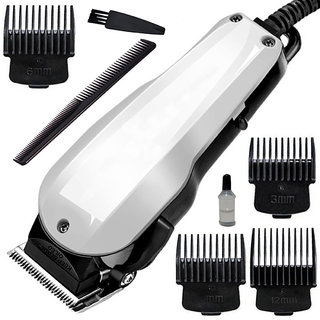Powerful corded 9W hair clipper and trimmer with 4 length settings in one pack. A complete grooming kit which can trim your hair and beard from 0.8mm, 3mm, 6mm, 9mm & 12mm. Corded ultra trim grooming kit gives you the power of precision with complete versatility for all of your grooming needs. With this trimmer in hand, you don’t have to worry about looking shabby. It’s designed to take care of your beard and shape it effortlessly. The Ultra Trim Bread Trimmer comes with 4 guide comb (3mm, 6mm, 19mm, 12mm) to give you the flexibility of different lengths and precise trimming. Corde, can be used as much time you want. Simple plug and play. Washable and removable, the cutting head can be simply changed and cleaned up under the faucet. Ergonomic design fits in your hand, with a grip that gives you precision control. Self-sharpening technology for trimming blades. High-Speed Drive: Linear Motor Drive. Silver Pd Alloy Motor of High Moving Speed. Motor Speed: 2,500 RPM.Voltage: 110-240V Power consumption: 9W. Frequency: 50Hz. Materials: ABS Plastic + Stainless Steel. Washing Mode: Pull out shaving head and wash Directly through Water. Package Content : 1 pcs Beard Trimmer + 4 Adjustable Guide Comb (3mm, 6mm, 9mm, 12mm) + 1 pcs Cleaning Brush + 1 pcs Lubricating Oil + 1 Comb + 1Scissor. 1 year Replacement Warranty.