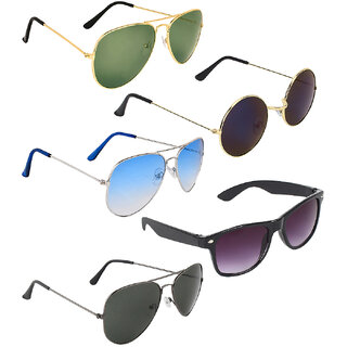Know MoreThis is combo pack of 5 Sunglasses. It have 3 Aviator Sunglasses , 1 Round Sunglasses and 1 wayfarer sunglasses.