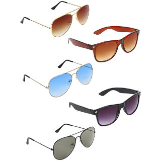 Know MoreThis is combo pack of 5 Sunglasses. It have 3 Aviator Sunglasses and 2 wayfarer sunglasses.